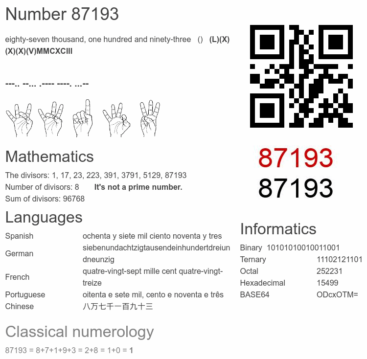 | Portuguese: | 🔊 (número 87 193) | oitenta e sete mil, cento e noventa e três |