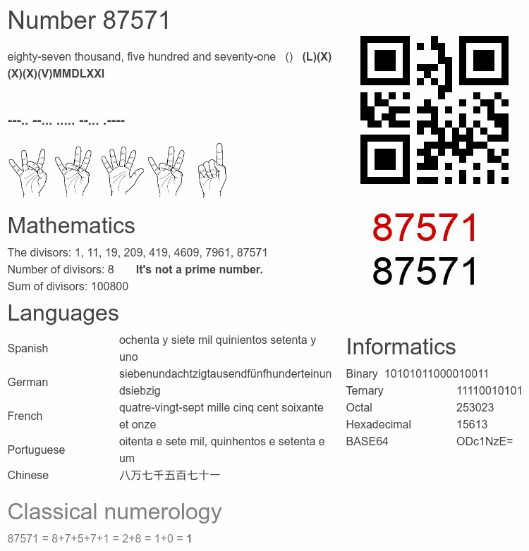 If you know something interesting about the 87571 number that you did not find on this page, do not hesitate to write us here.