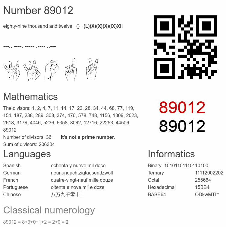 Number 89012 infographic