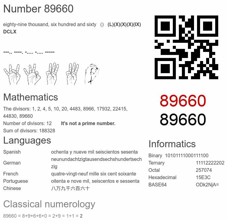 Number 89660 infographic