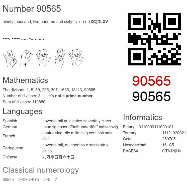 Number 90565 infographic