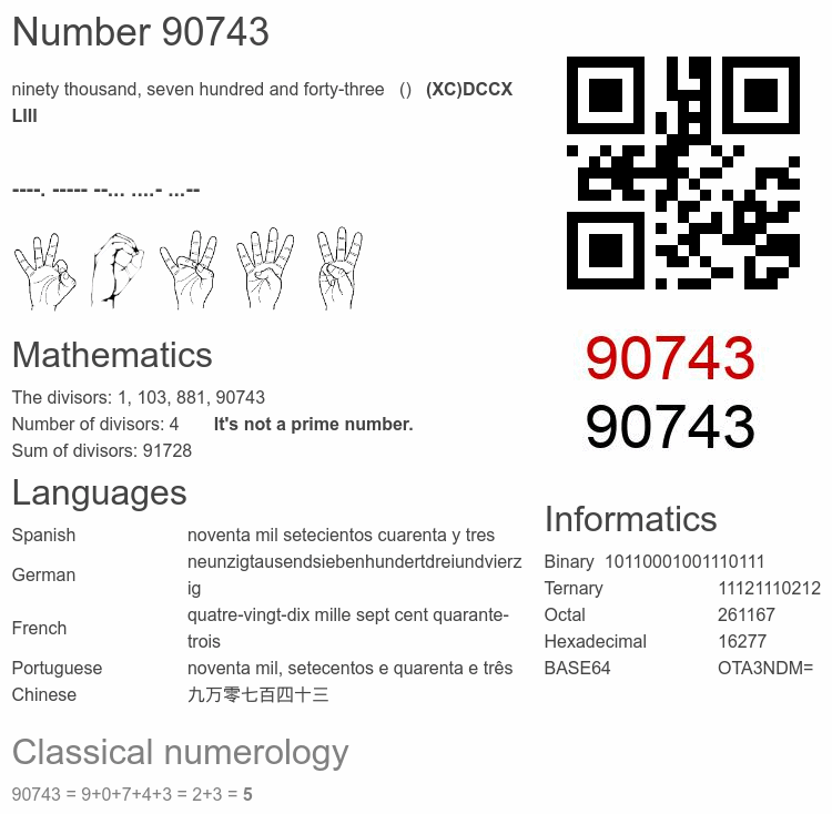 | Portuguese: | 🔊 (número 90 743) | noventa mil, setecentos e quarenta e três |