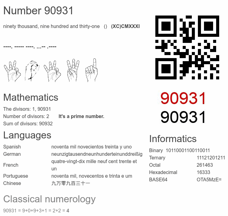 Interesting facts about the number 90931
