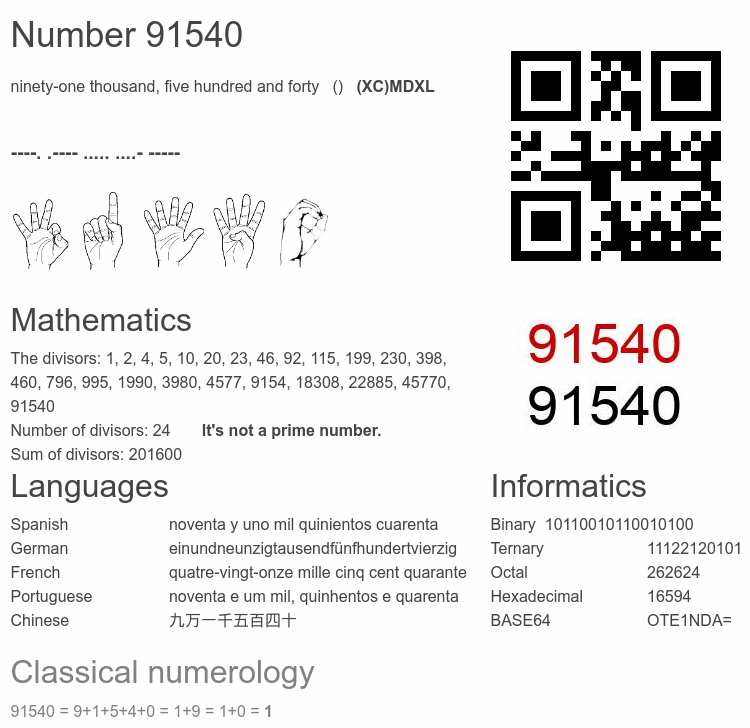 Number 91540 infographic