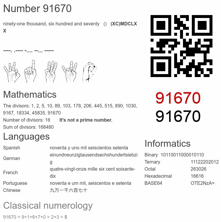 Number 91670 infographic