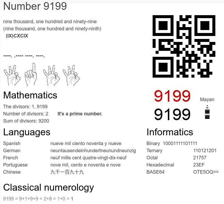 Number 9199 infographic