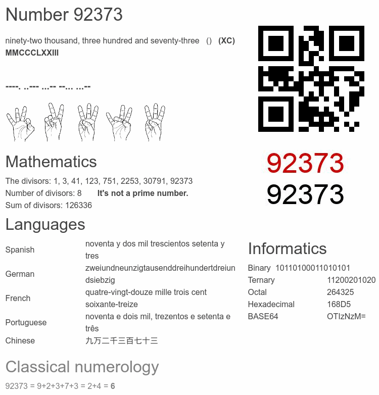 Number 92373 facts