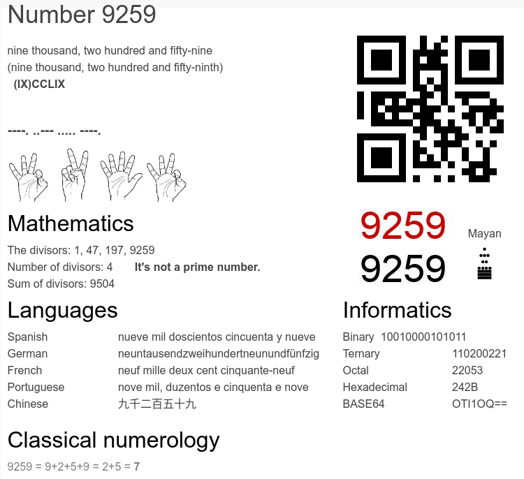 If you know something interesting about the 9259 number that you did not find on this page, do not hesitate to write us here.