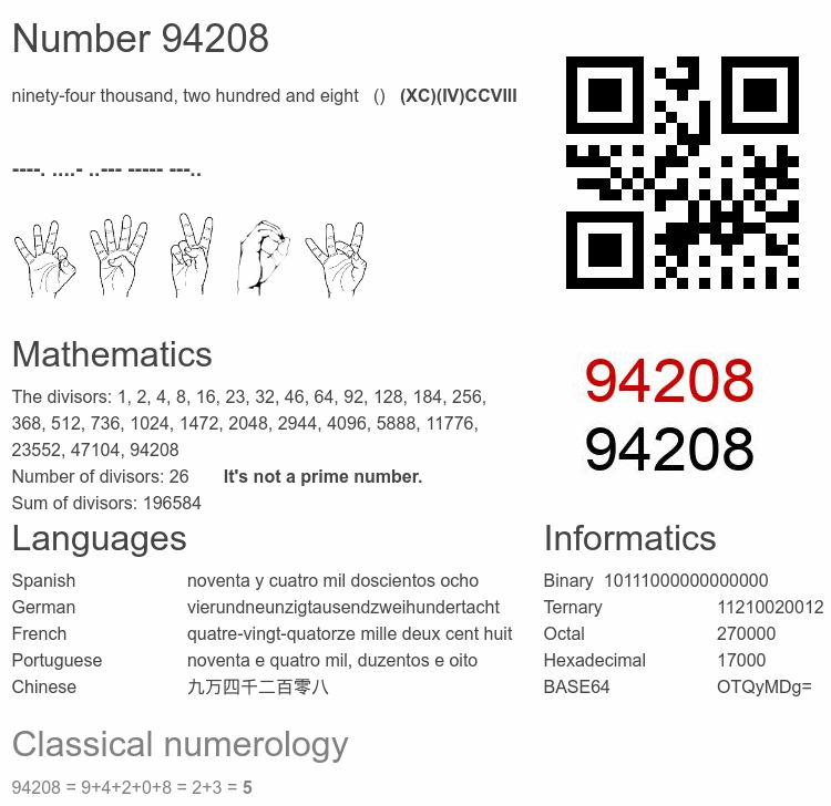 Number 94208 infographic