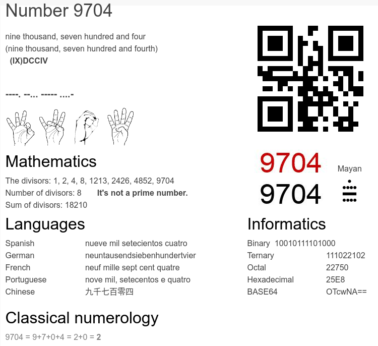 Interesting facts about the number 9704