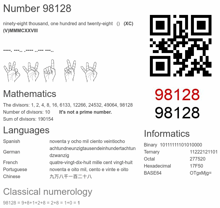 Number 98128 infographic