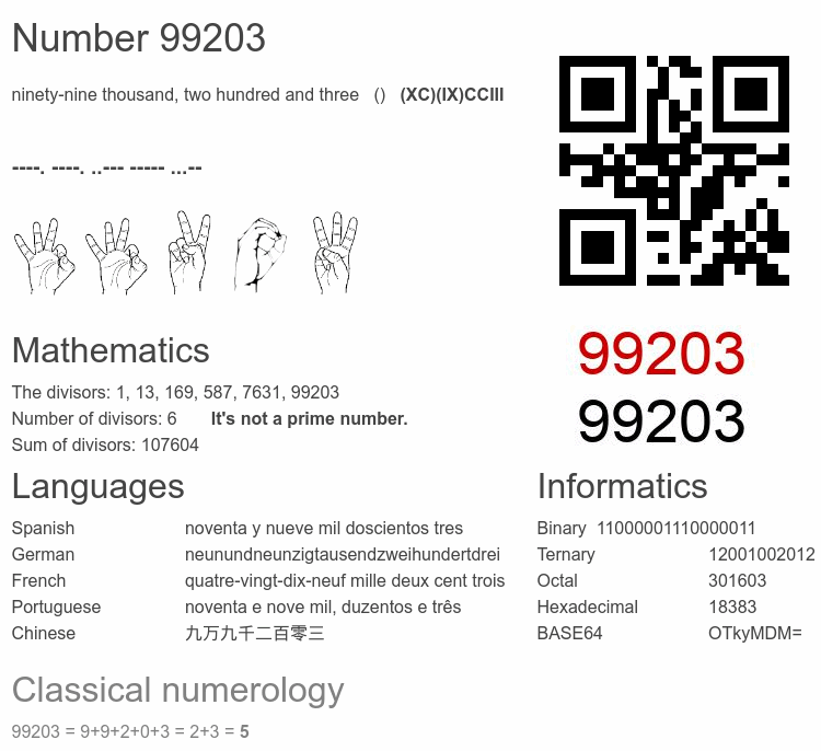 | Spanish: | 🔊 (número 99.203) | noventa y nueve mil doscientos tres |
